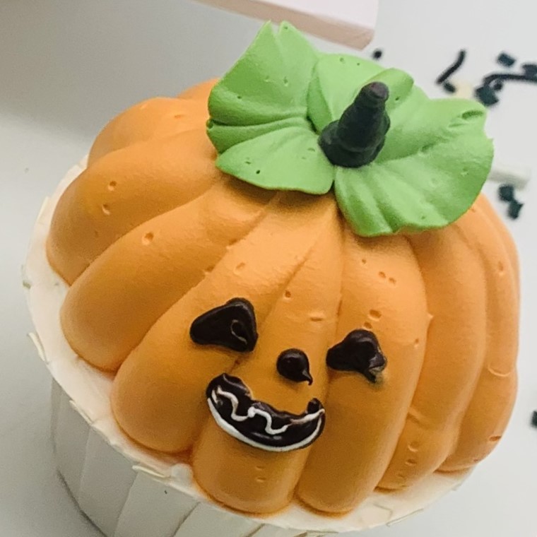1 Stack and carve the sponge cakes into a dome shape (like a pumpkin).